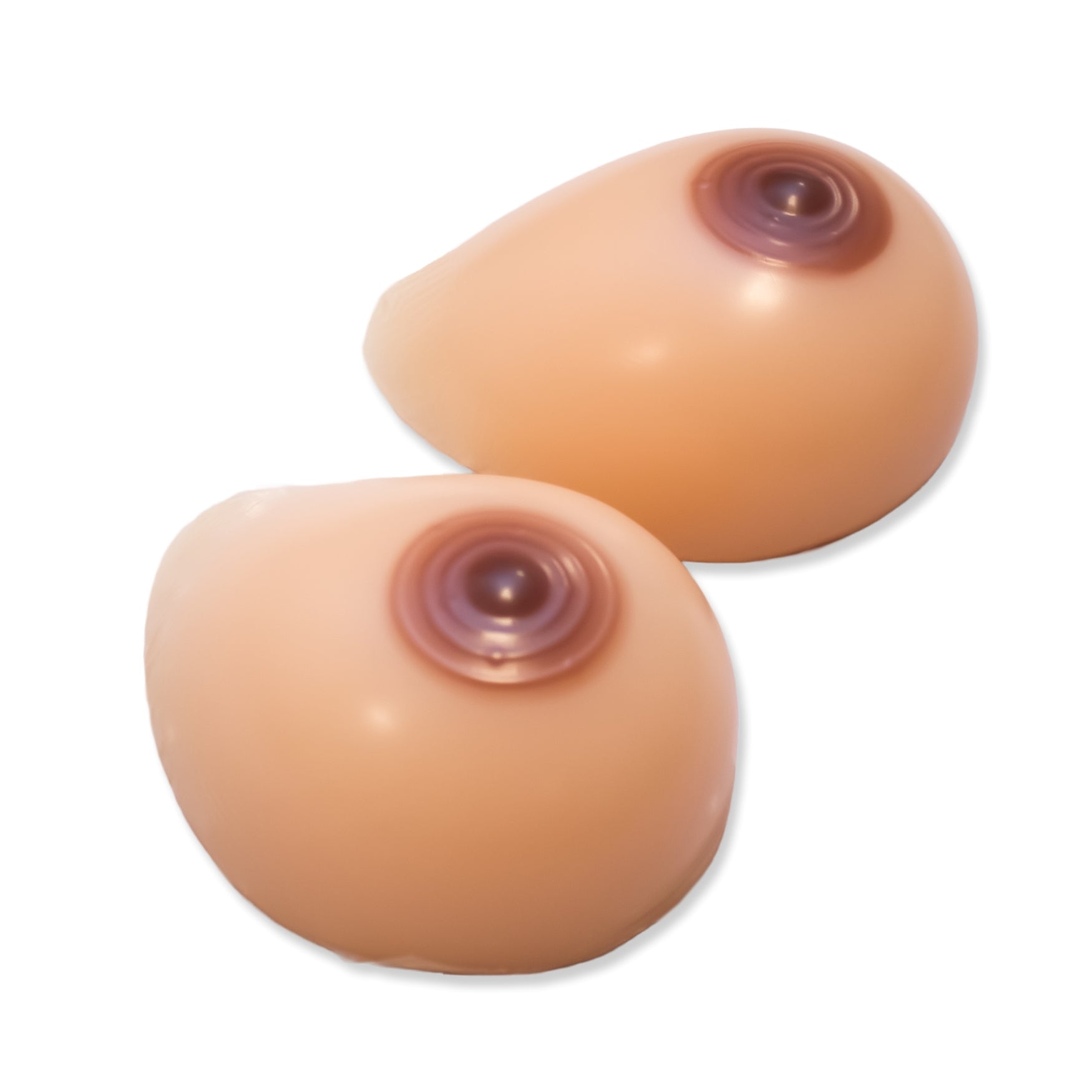 Silikonbrüste in Tropfenform, mit Haftschicht & farbige Nippel, Typ T5
